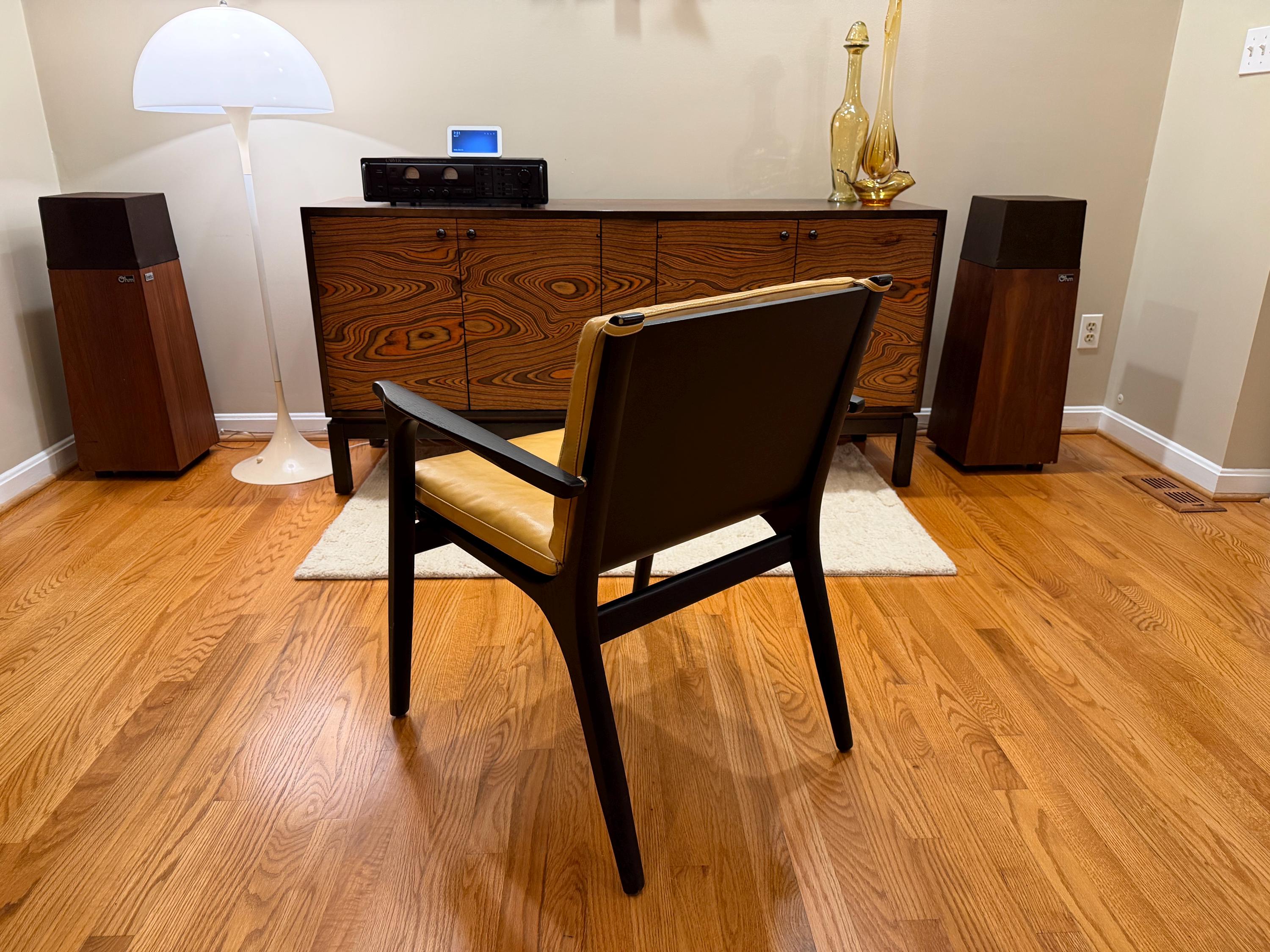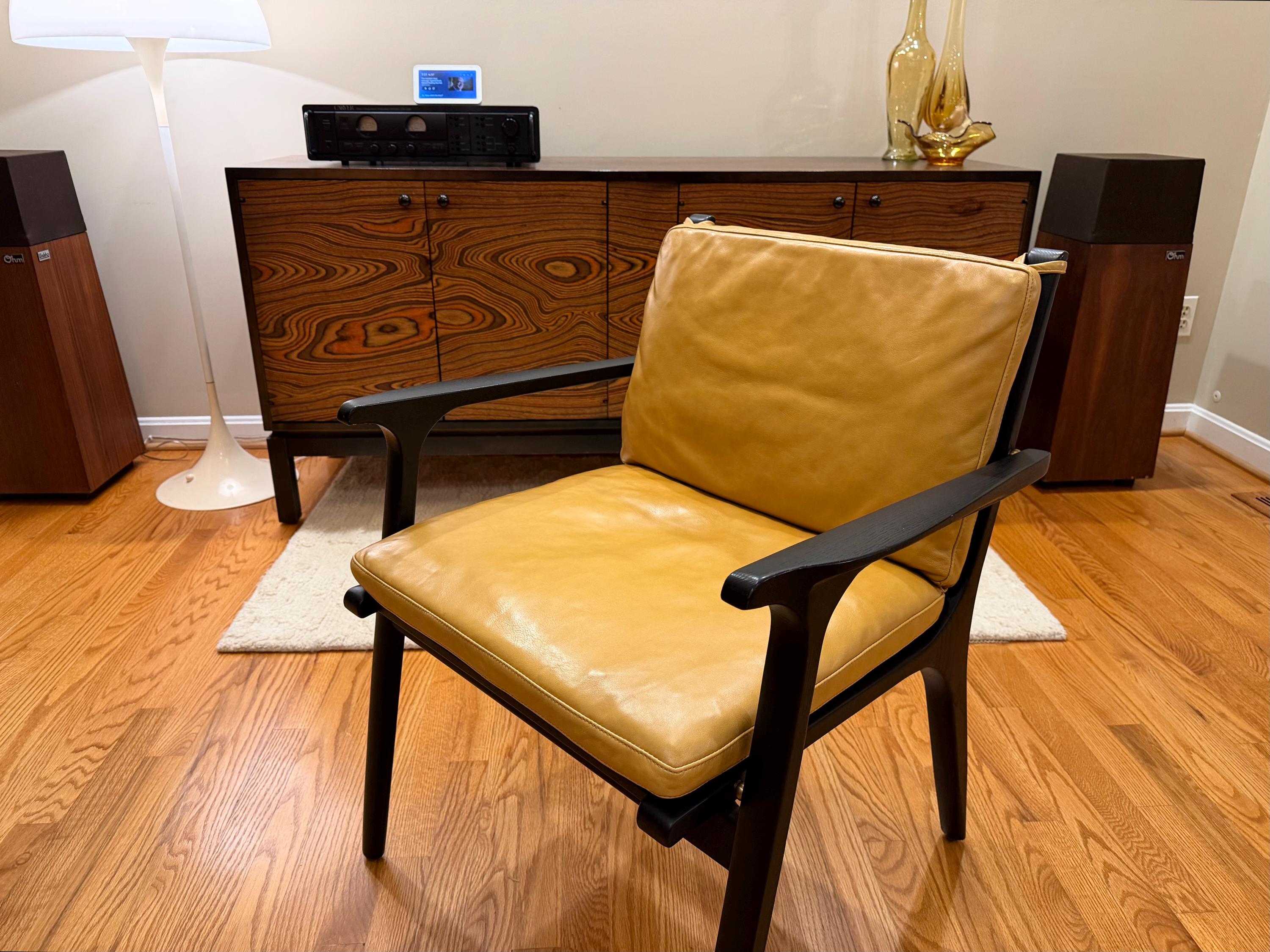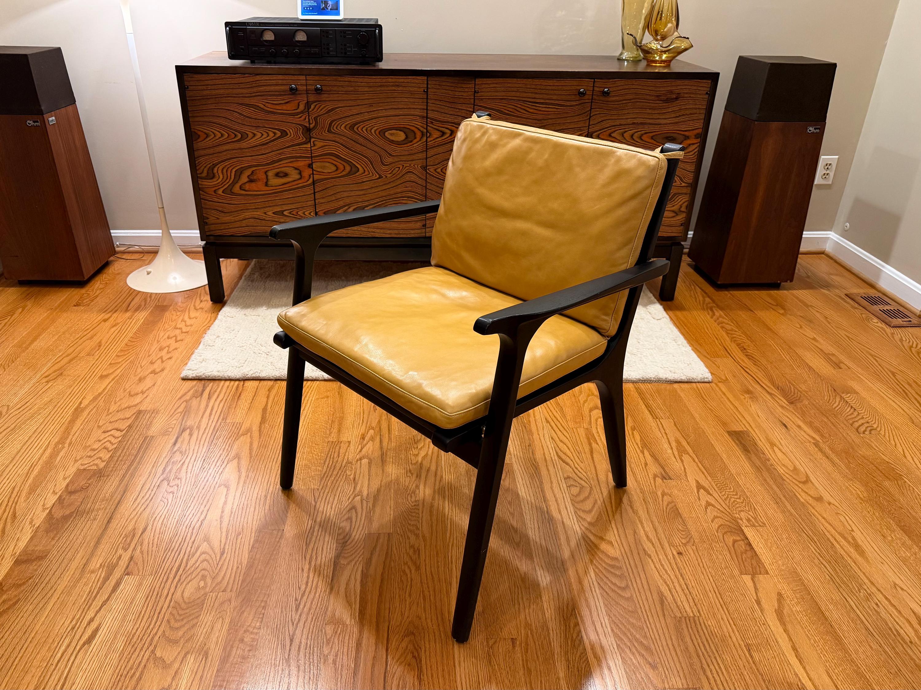 Stellar Works, Ren Chair, Dining Armchair, Black Oak Chair, Mustard Leather, Scandinavian Design, Mid Century Modern, Designer Dining Chair, Solid Wood Seating, Minimalist Furniture