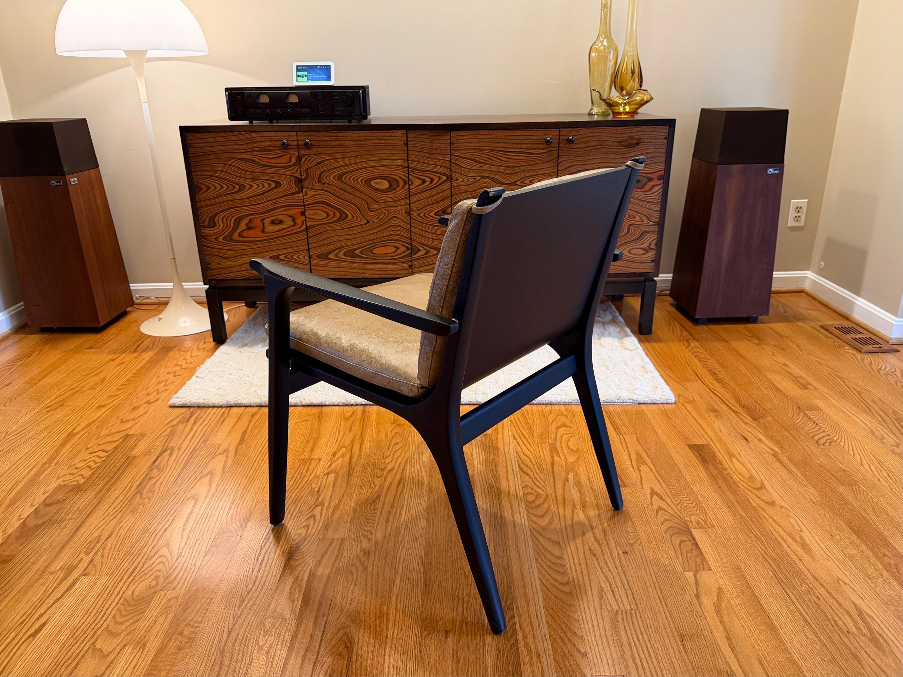 Stellar Works, Ren Chair, Dining Armchair, Black Oak Chair, Mustard Leather, Scandinavian Design, Mid Century Modern, Designer Dining Chair, Solid Wood Seating, Minimalist Furniture