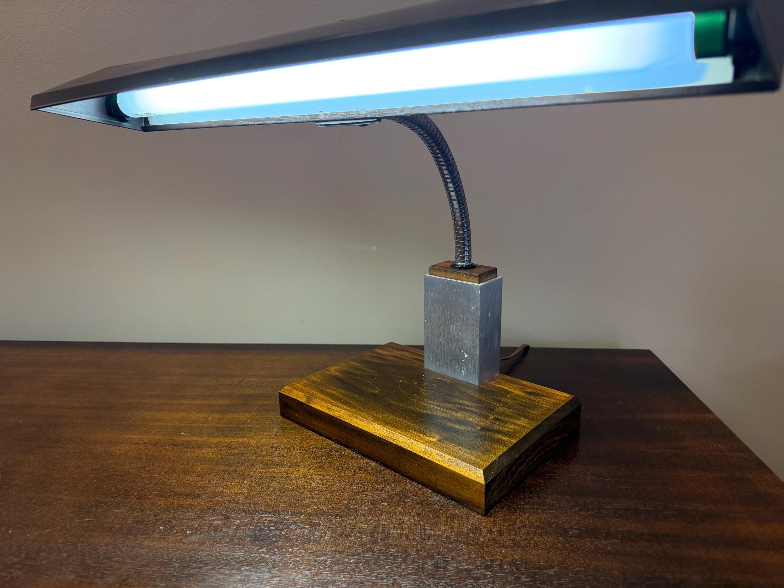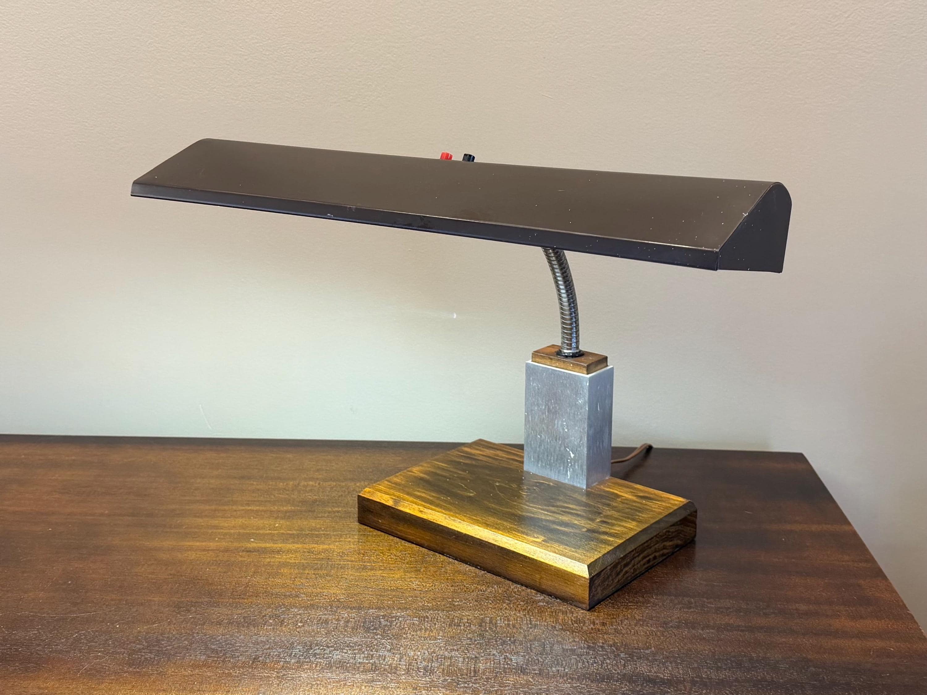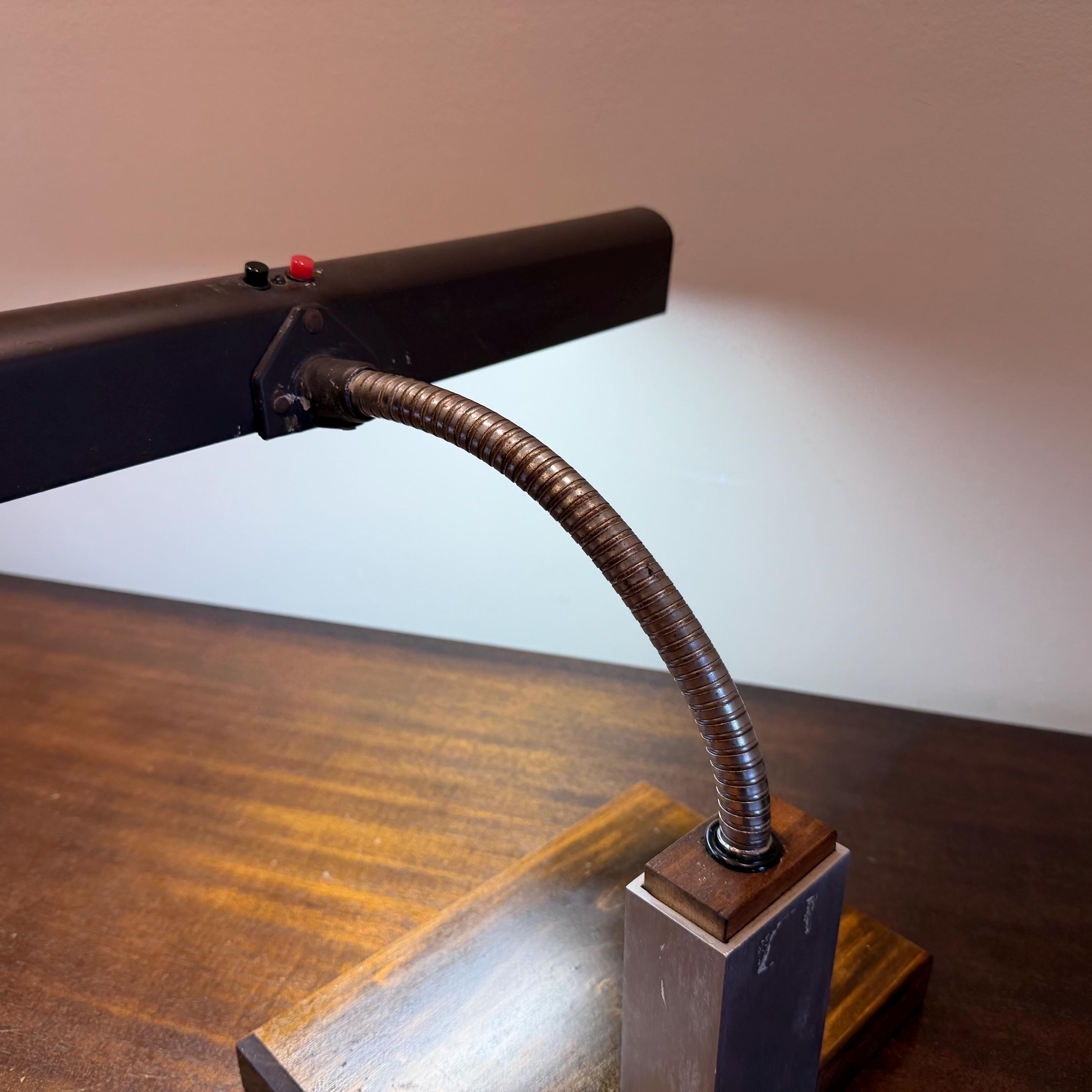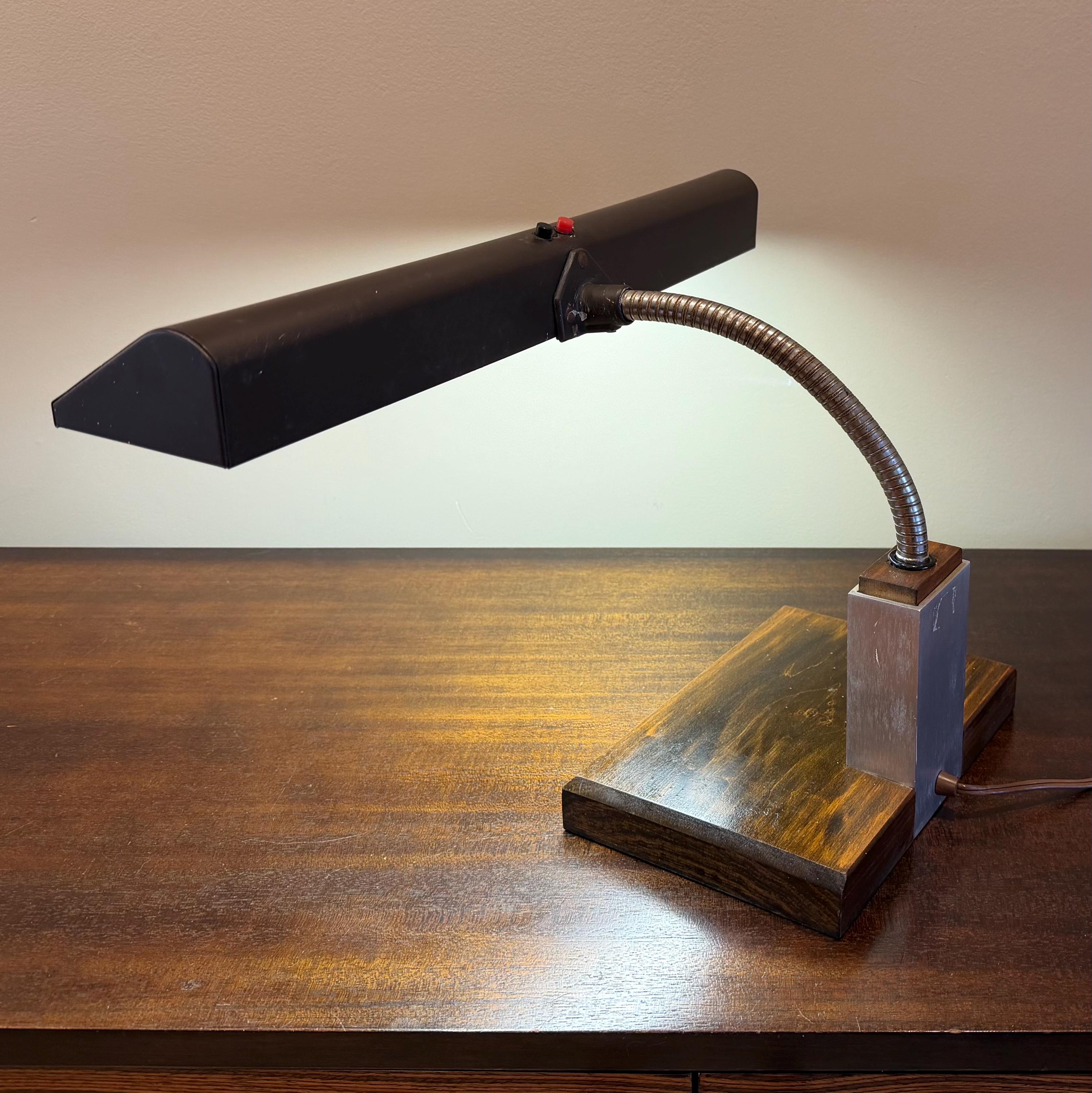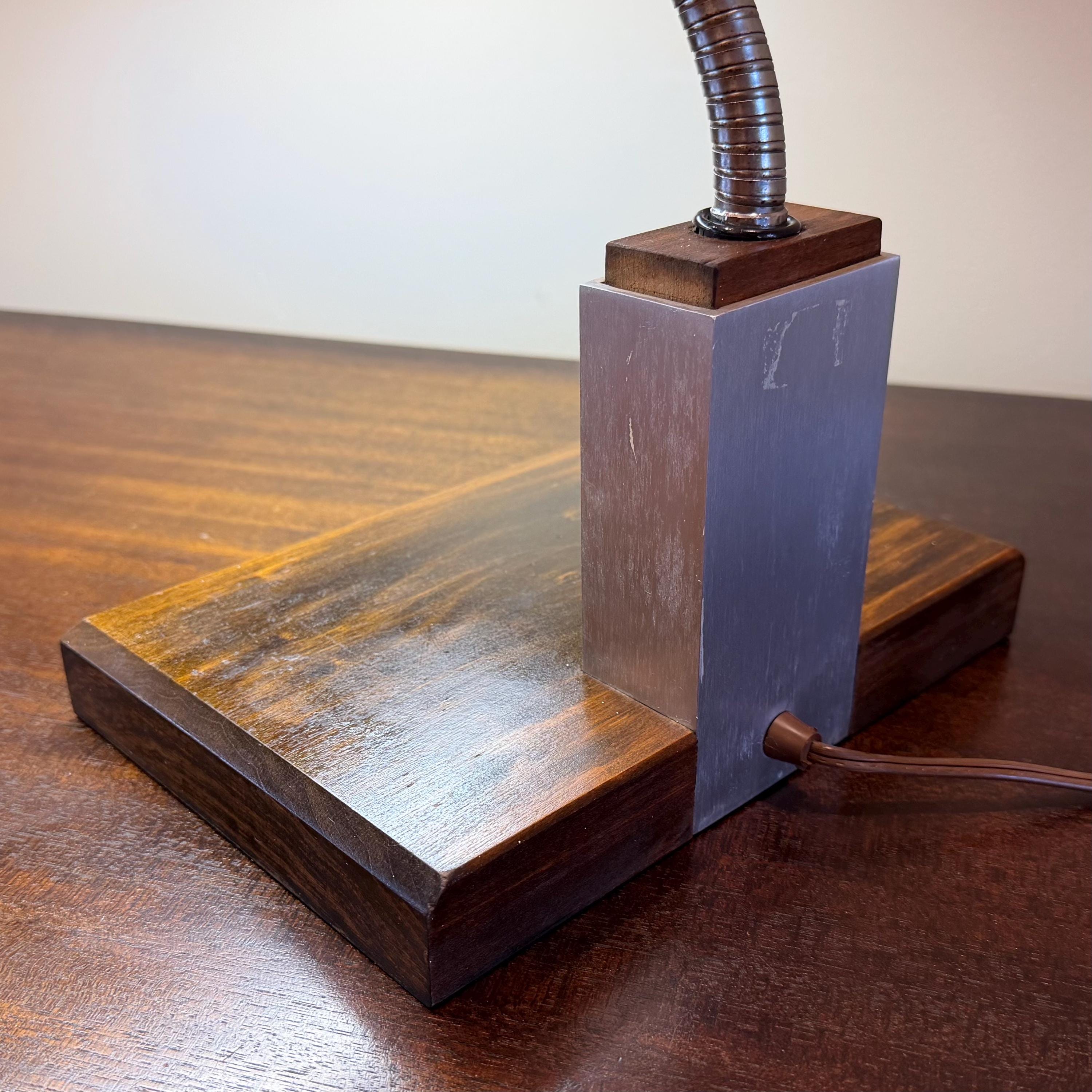 Vintage Mid Century Modern Gooseneck Walnut Base Brown Mad Men Desk Lamp