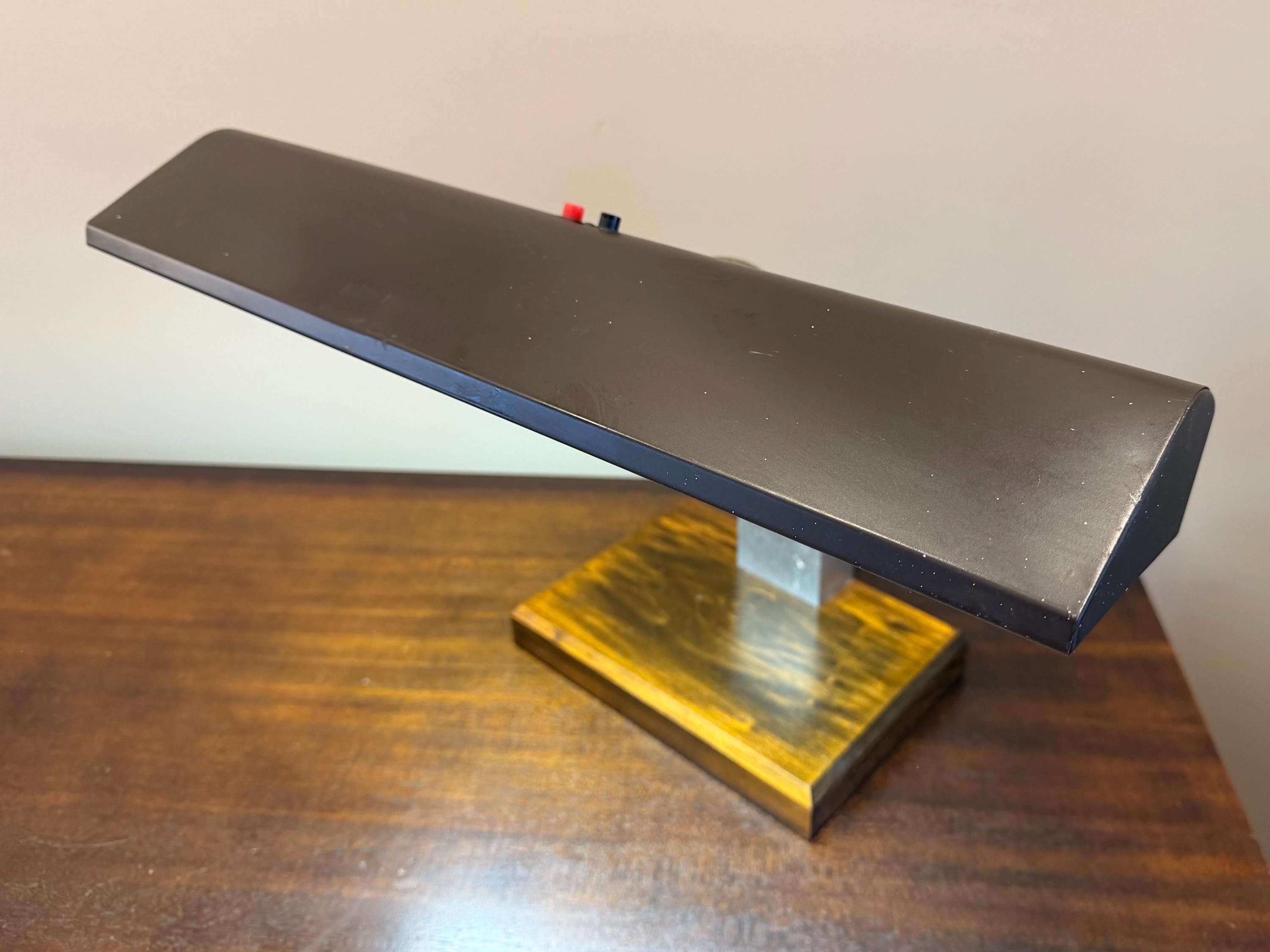 The metal shade shows minor surface wear consistent with age, as shown in the images. The flexible neck allows for adjustable height and light positioning.