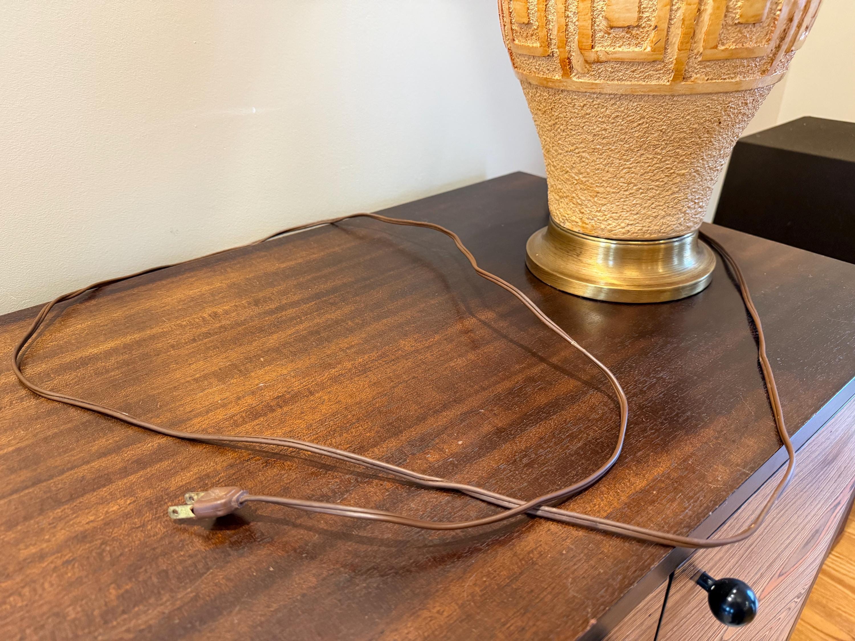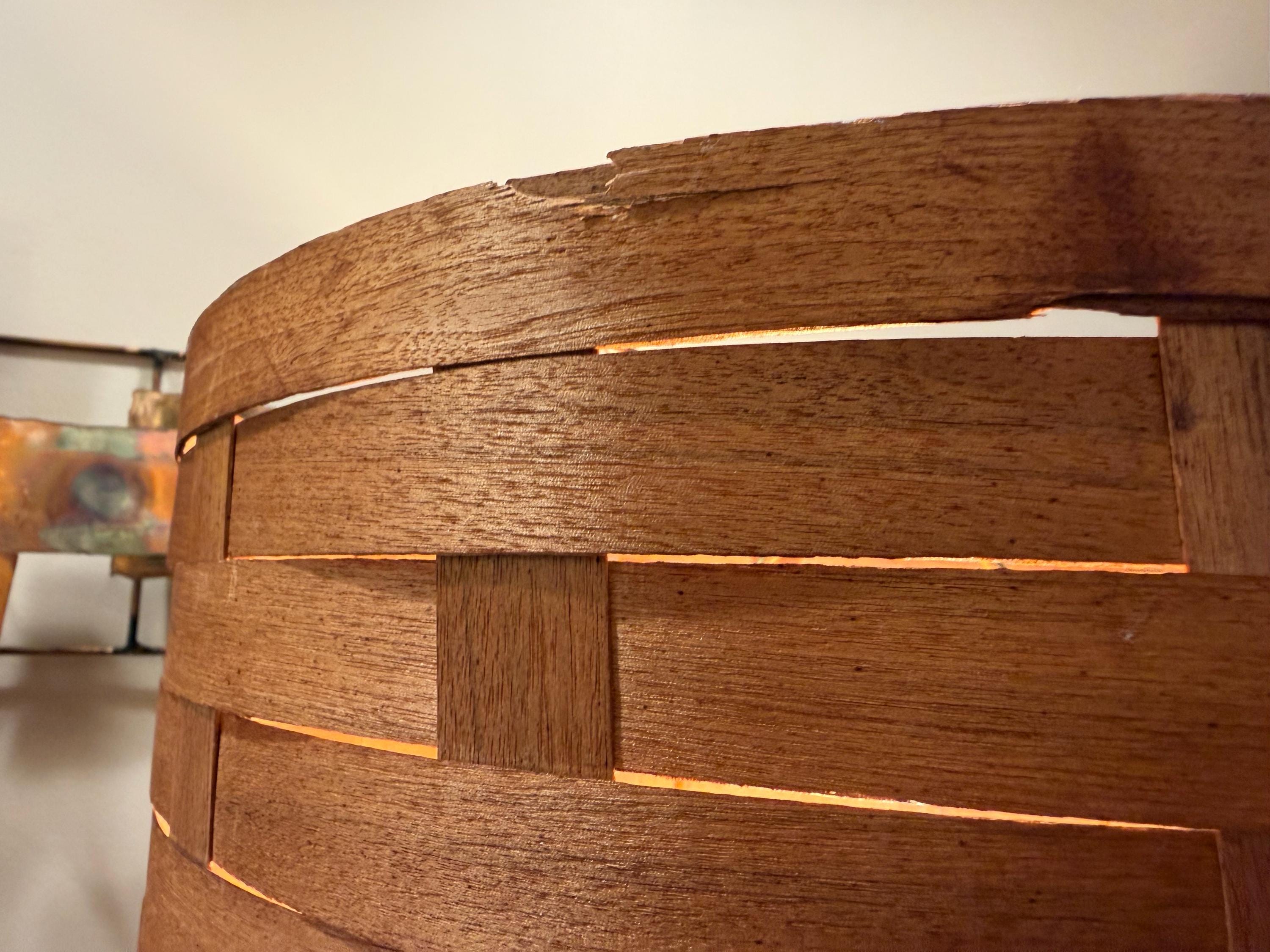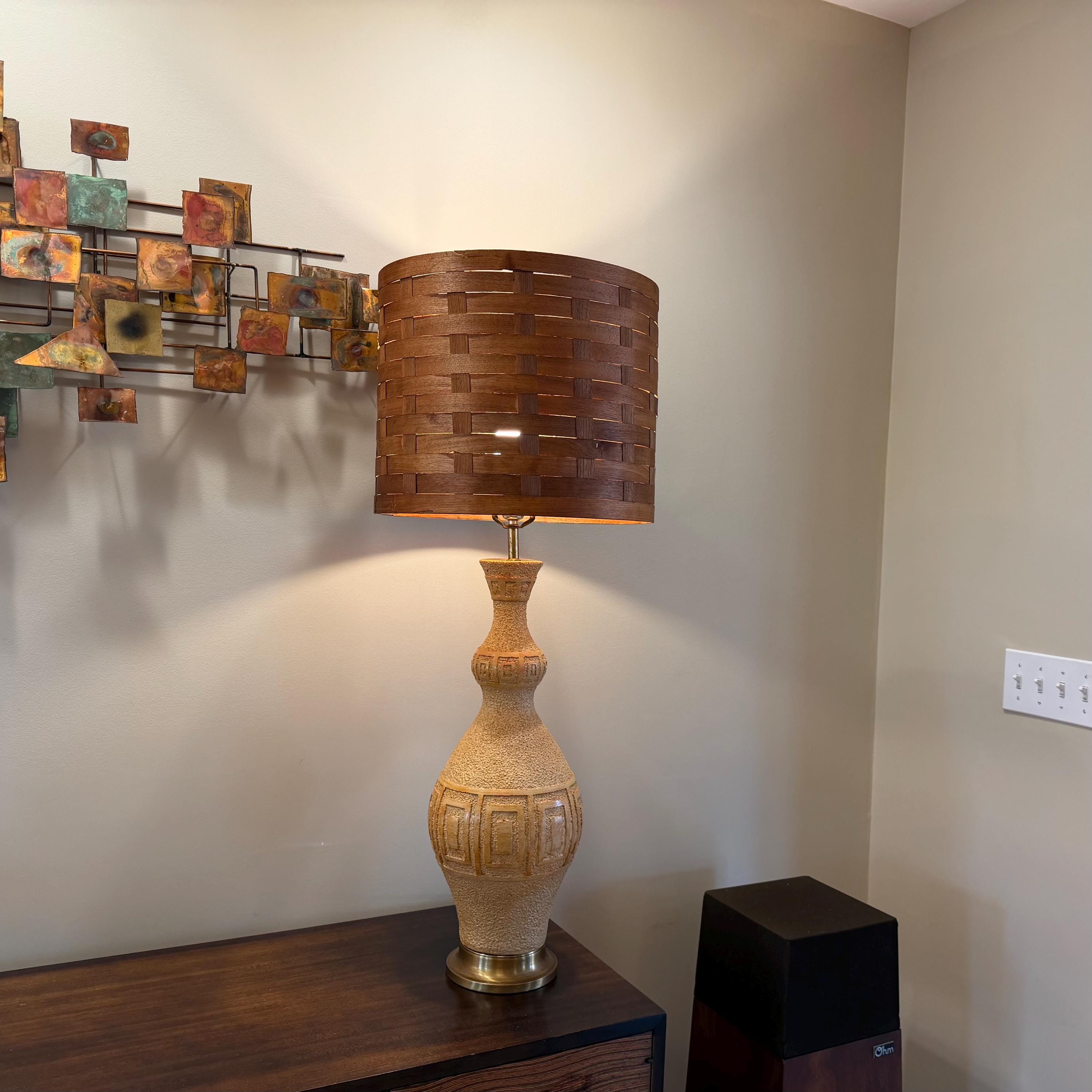 Ceramic table lamp, Teak lamp shade, MCM lighting, 1960s lamp, vintage ceramic, woven wood shade, brutalist lamp, large table lamp, mid century decor, textured pottery